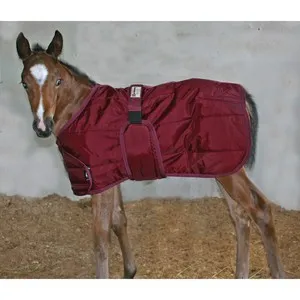 Flexibelt stald føldækken fremstillet i slidstærkt 420 denier nylon, isoleret med 6 oz fiberfyld og en vedligeholdelsesfri nylon inderside. Model med bred mavegjord og overlappende fronter, så dækkenet kan tilpasses i takt med føllet vokser 30″-36″ passer til de fleste føl af lette racer. 38″-45″ passer til føl af store fuldblod og varmblod. 45″-52″ passer til ekstra store føl og ponier.